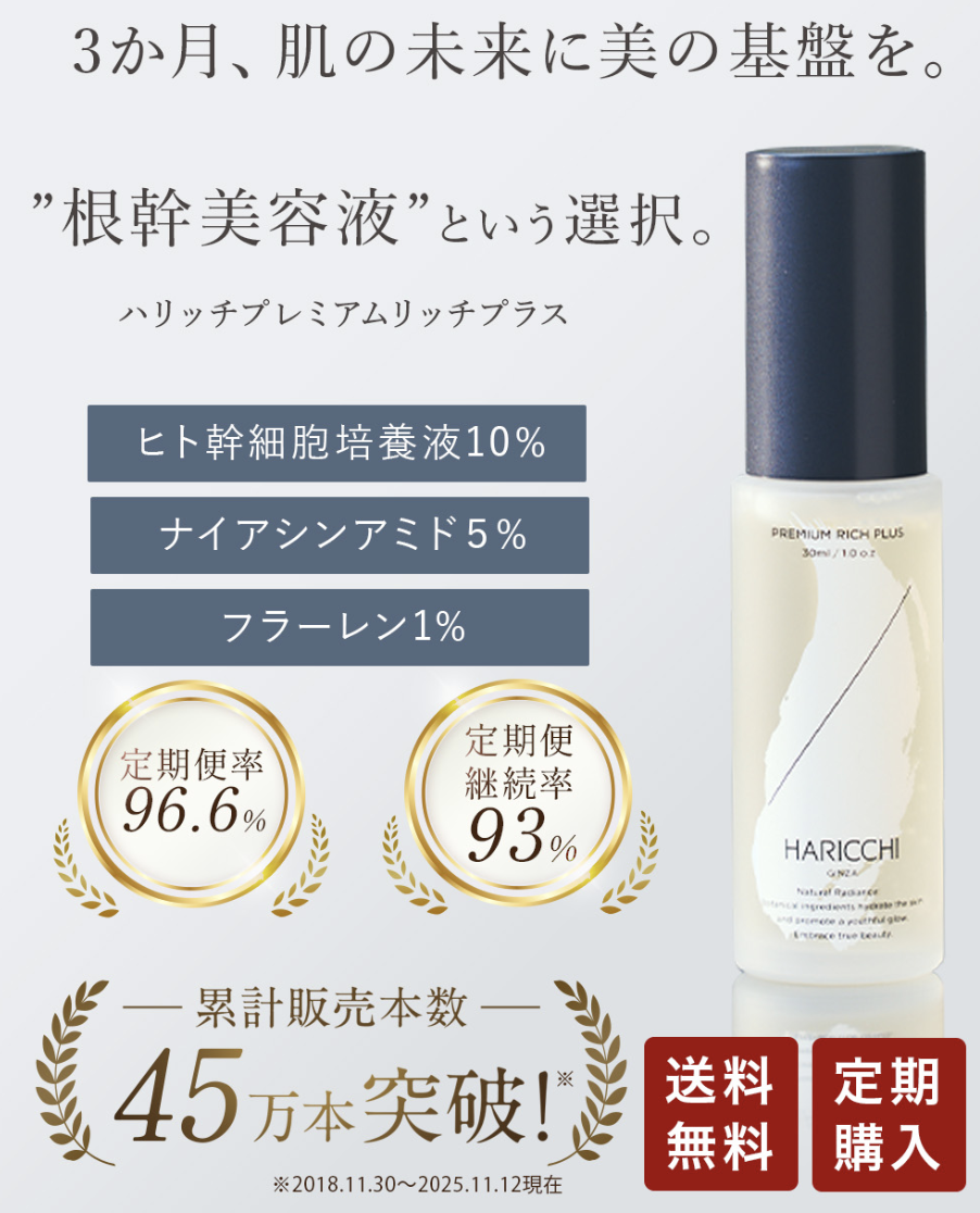 「スキンケアの工程が多すぎて続かない」「鏡を見るたびにハリ不足を感じる」そんな悩みを持つ大人世代から圧倒的な支持を得ているのが、ハリッチプレミアムリッチプラスです。